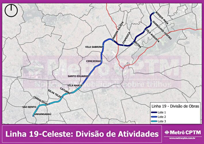 圣保罗地铁19号线天蓝线的建设成本预计超过200亿雷亚尔,线路起于圣保罗市中心的安汉加巴乌站,终点为瓜鲁柳斯市中心的玛雅森林站,将与地铁1号线(蓝线)、2号线(绿线)与3号线(红线)实现换乘,同时具备未来与城际铁路连接的可能性。按照计划,本次招标将分为三个独立标段,每个标段将配备一台盾构机,以实现同时施工、加快进度的目标。